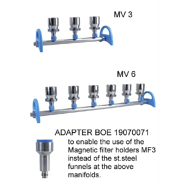 Opis: Razvodnici od nerđajućeg čelika MV 3, sa 3 levka od po 100ml